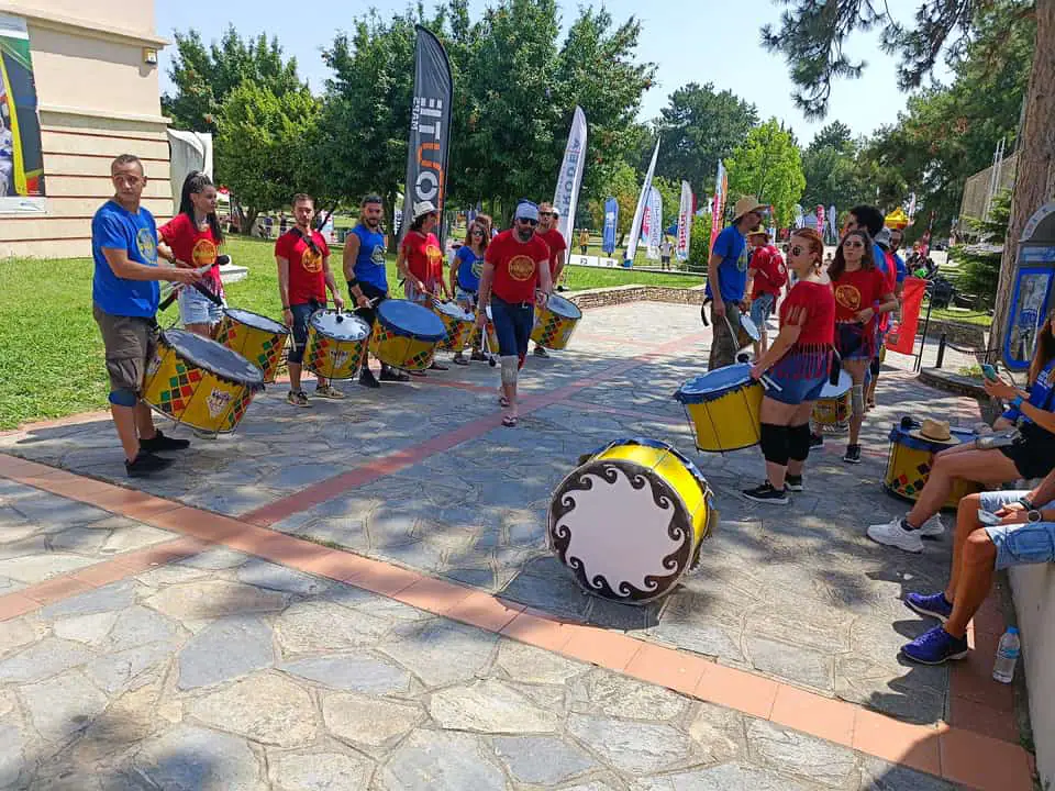 Τους αθλητές εμψύχωνε το συγκρότημα κρουστών Paranaue με αφροβραζιλιάνικη μουσική.