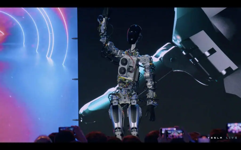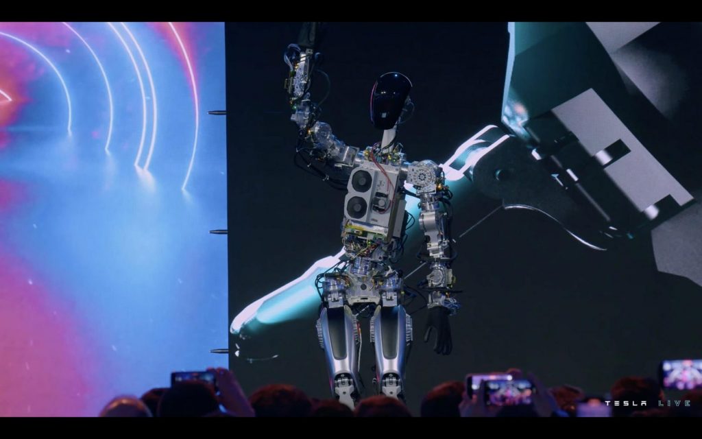 Το πρωτότυπο ρομπότ, κατασκευασμένο από την Tesla, περπάτησε επί σκηνής και χαιρέτισε το πλήθος, σε μια κίνηση που συμβολίζει τις φιλοδοξίες της εταιρείας κατασκευής αυτόνομων ηλεκτρικών οχημάτων – η οποία αντιμετωπίζει πια ολοένα πιο έντονο ανταγωνισμό – να επεκταθεί σε καινοτομικούς τομείς πέρα από τα οχήματα.