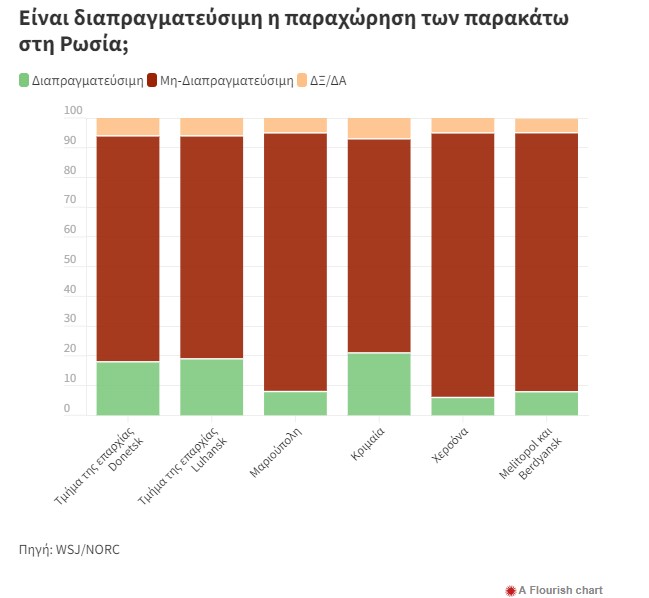 Τέλος, ιδιαίτερα ενδιαφέρουσες είναι οι απαντήσεις στο κατά πόσον οι Ουκρανοί θα αποδέχονταν εδαφικές παραχωρήσεις στη Ρωσία, προκειμένου να επιτευχθεί ειρήνη.