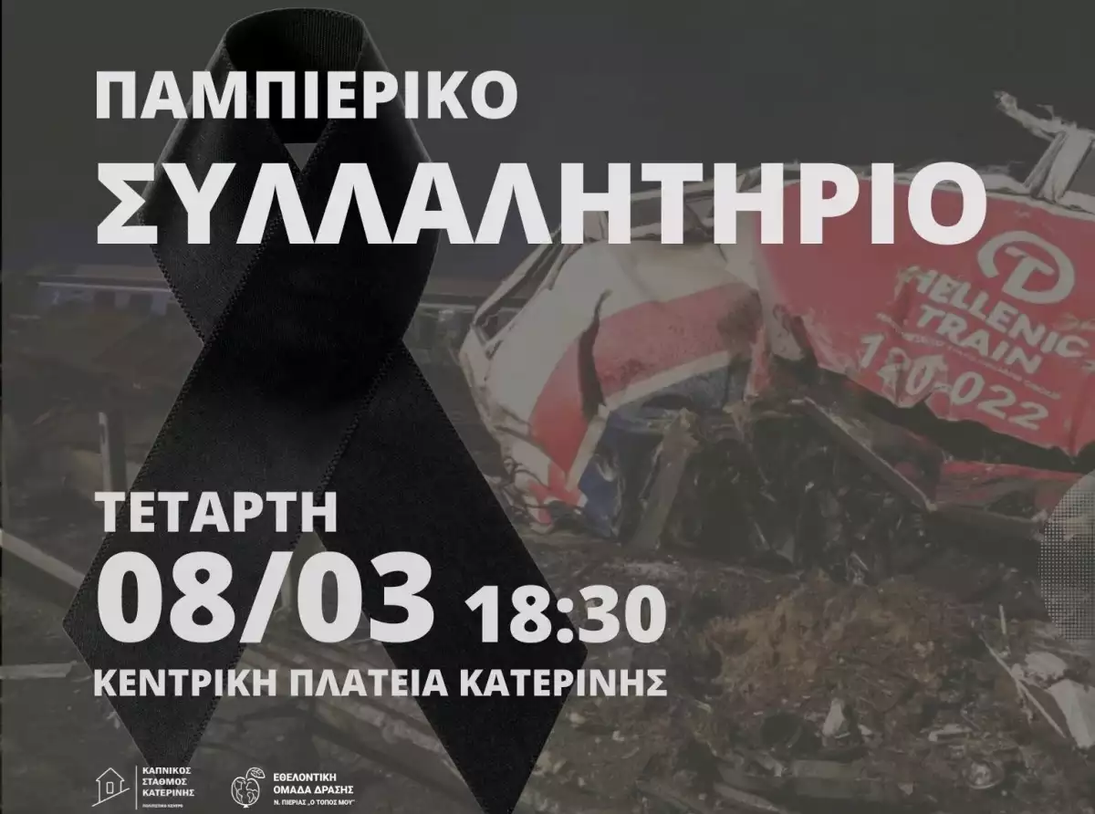 Η Εθελοντική Ομάδα Δράσης Ν. Πιερίας «Ο ΤΟΠΟΣ ΜΟΥ» καλεί φοιτητές, μαθητές, συλλογικότητες, σωματεία, συλλόγους, φορείς και όλους τους πολίτες της Πιερίας σε νέο συλλαλητήριο που θα πραγματοποιηθεί την Τετάρτη 8 Μαρτίου 2023, ώρα 18:30 στην Κεντρική Πλατεία Κατερίνης.