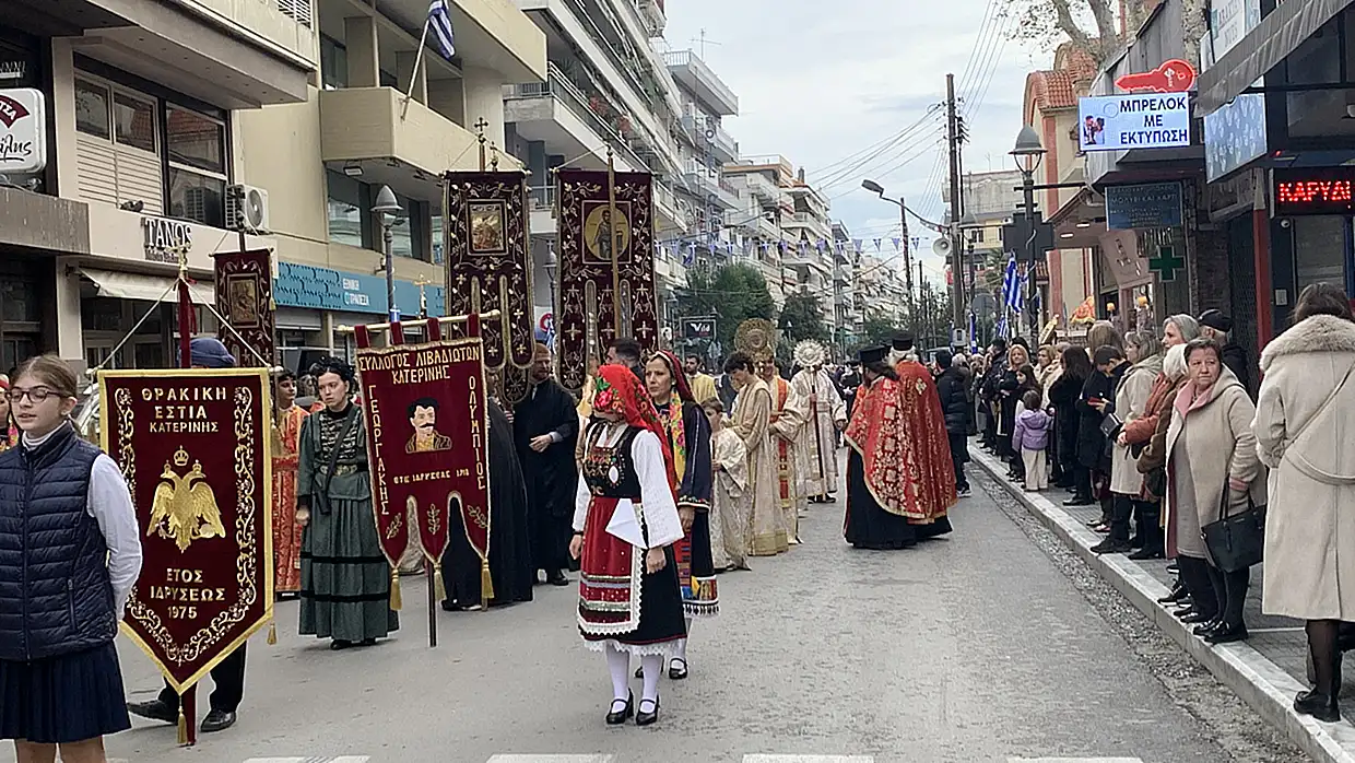 Με κάθε επισημότητα και με την παρουσία πλήθους πιστών τελέστηκε την Τρίτη 25 Νοεμβρίου 2025 η πανηγυρική εορτή της Αγίας Μεγαλομάρτυρος Αικατερίνης στον κατάμεστο Ιερό Καθεδρικό Ναό Θείας Αναλήψεως Κατερίνης.