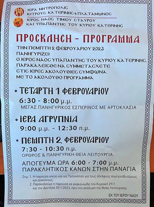 Πανήγυρις Ι.Ν. Τιμίου Σταυρού & ΥΠΑΠΑΝΤΗΣ του Κυρίου
