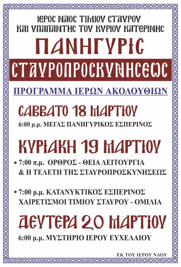 Πανήγυρις Σταυροπροσκυνήσεως στον Ιερό Ναό Τιμίου Σταυρό