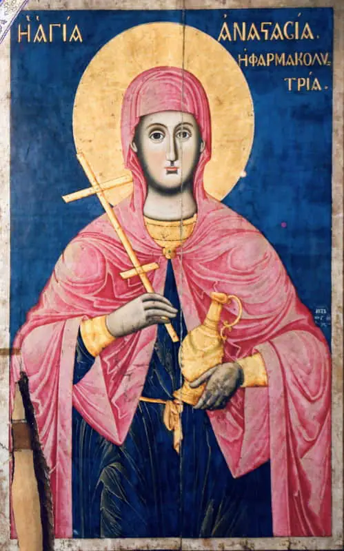 Την Πέμπτη 22 Δεκεμβρίου πανηγυρίζει το ομώνυμο Παρεκκλήσιο της Αγίας Αναστασίας της Φαρμακολυτρίας, στον Ιερό Ναό Αγίας Παρασκευής Κατερίνης.