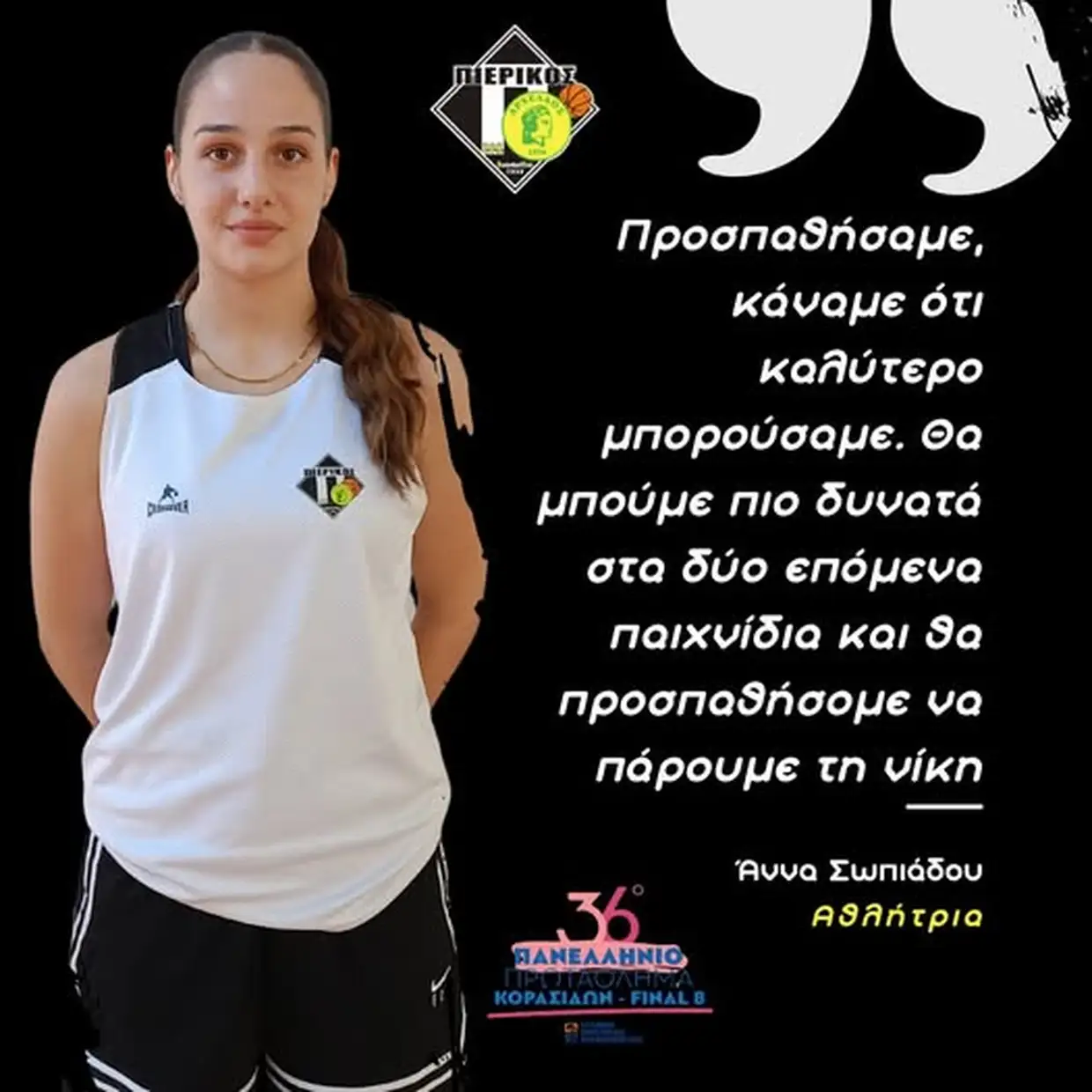 «Αρχικά θα ήθελα να συγχαρώ τα κορίτσια του Πιερικού Αρχέλαου έπαιξαν σκληρά.