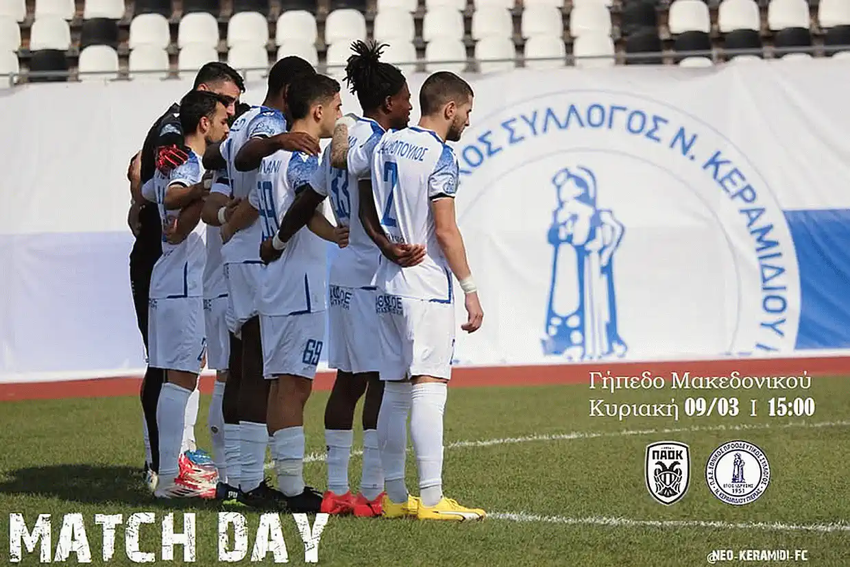 Ο Εθνικός Νέου Κεραμιδίου αντιμετωπίζει την ομάδα του ΠΑΟΚ Β την ερχόμενη Κυριακή 9 Μαρτίου και ώρα 15:00 στο γήπεδο του Μακεδονικού στην Θεσσαλονίκη στο πλαίσιο της 3ης αγωνιστικής των αγώνων Play Out της Super League 2 με την ομάδα της Πιερίας να διψάει για βαθμό ή βαθμούς στην μάχη που δίνει για την παραμονή της στην κατηγορία.