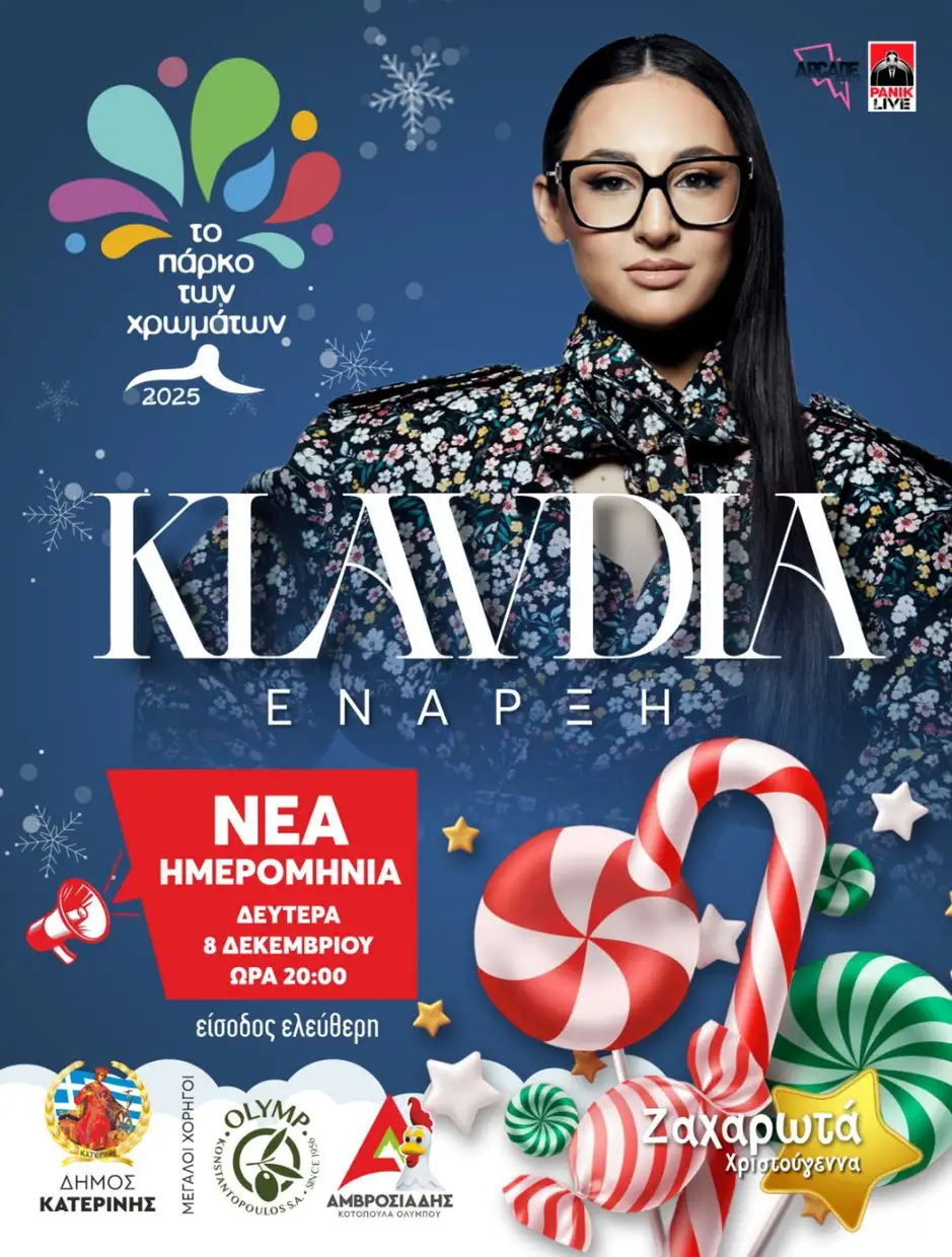 Αναβολή λόγω καιρού – Η επίσημη πρεμιέρα και η μεγάλη συναυλία της Κλαυδίας στο Πάρκο των Χρωμάτων τη Δευτέρα 08/12 στις 20:00.