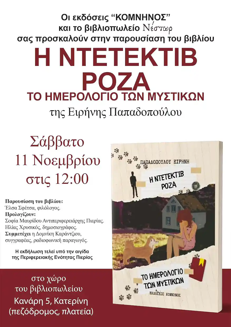 το Σάββατο 11 Νοεμβρίου 2023 και ώρα 12:00 το μεσημέρι στον χώρο του βιβλιοπωλείου Νέστωρ, Κανάρη 5.