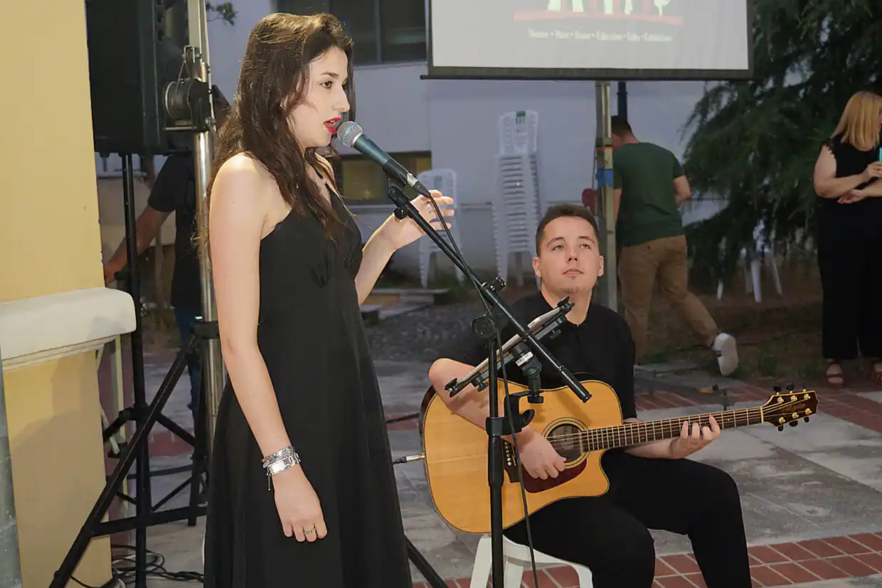 Η βραδιά διανθίστηκε μουσικά με ακούσματα του Ελληνικού ρεπερτορίου, όπως τα απέδωσαν η Εύα Νούλα (φωνή) και ο Λευτέρης Μπούκλας (κιθάρα).