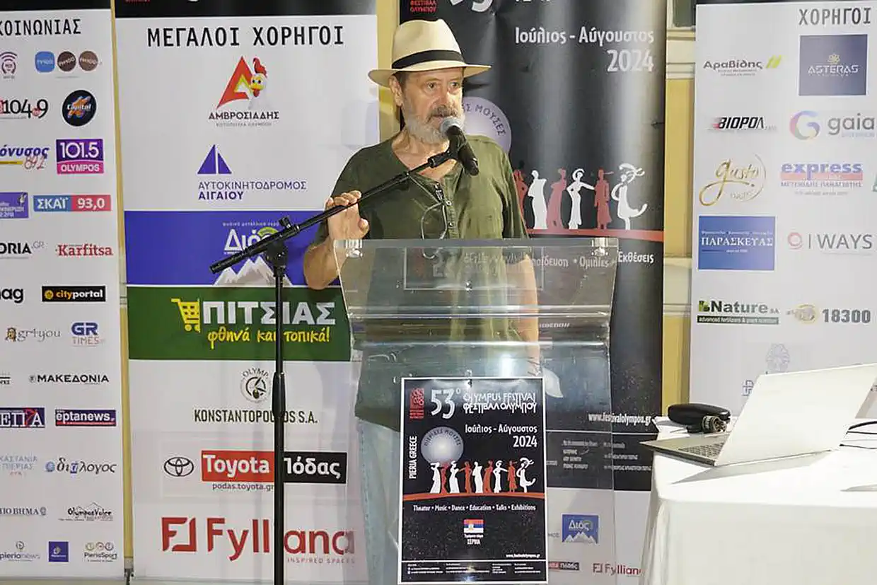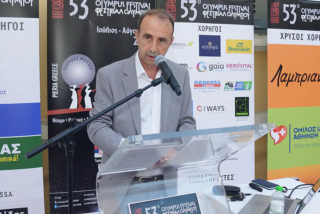 «Για 53η φορά το θέατρο, η μουσική, τα εικαστικά, τα αρχαιολογικά συμπόσια και οι ομιλίες, θα βρουν τη φυσική τους θέση στους αρχαιολογικούς αλλά και σύγχρονους χώρους της Πιερίας. Για μια χρονιά ακόμα το Φεστιβάλ Ολύμπου θα αντισταθεί σε ότι κακόγουστο που δυστυχώς αρκετοί πολιτιστικοί φορείς το ονομάζουν πολιτισμό και θα έλεγα πως για πρώτη φορά φέτος το Φεστιβάλ Ολύμπου τολμά πράγματα που δίνουν μια νέα δυναμική και προοπτική στον τόπο μας.»