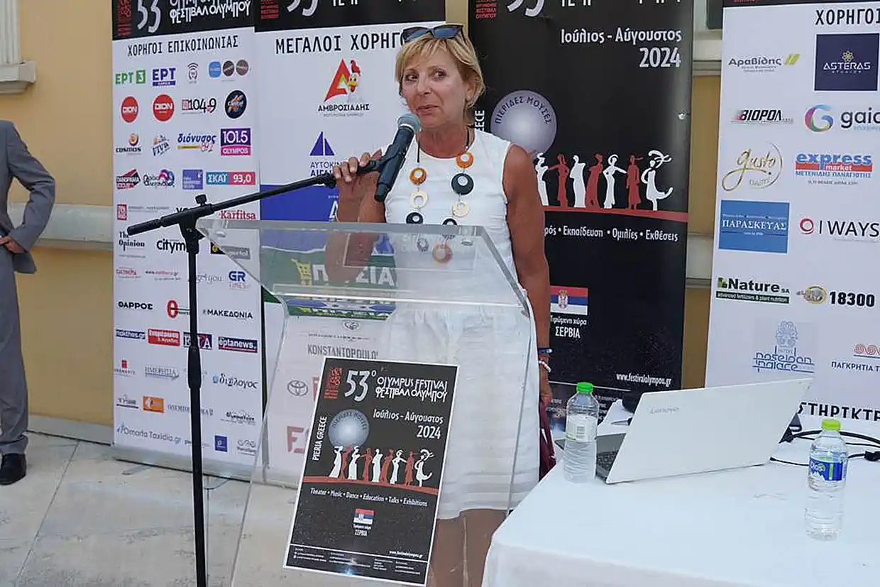 Η Αντιπεριφερειάρχης Πιερίας Σοφία Μαυρίδου: Το Φεστιβάλ Ολύμπου το αγαπήσαμε από τα πρώτα χρόνια, το στηρίξαμε και το στηρίζουμε γιατί πιστεύουμε πάρα πολύ σε αυτό, στους ανθρώπους του και σε αυτό που γίνεται πραγματικά. Χαιρόμαστε ιδιαίτερα και είμαστε περήφανοι γιατί το φεστιβάλ αγκαλιάστηκε και από την Αθήνα και έγινε γνωστό μέσα από την παρουσίαση του.