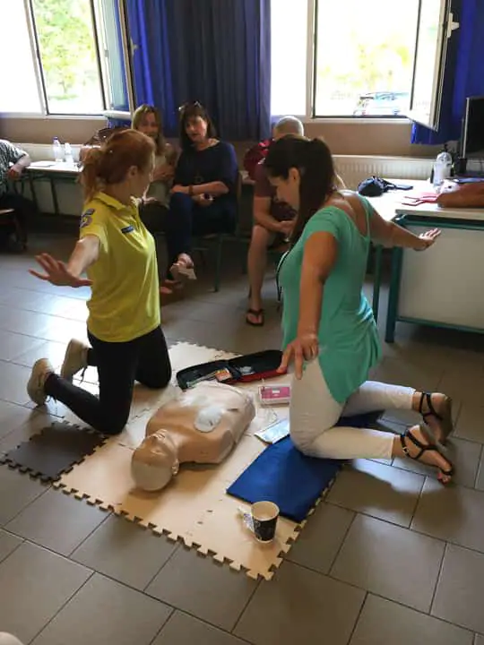 Η δική μας παρουσίαση και εκπαίδευση ήταν πάνω στις Πρώτες Βοήθειες με έμφαση στην Καρδιοπνευμονική Αναζωογόνηση (CPR) και τη χρήση του Αυτόματου Εξωτερικού Απινιδωτή (AED) παρέχοντας χρήσιμες γνώσεις και πολύτιμες πληροφορίες σε όλους τους συμμετέχοντες.