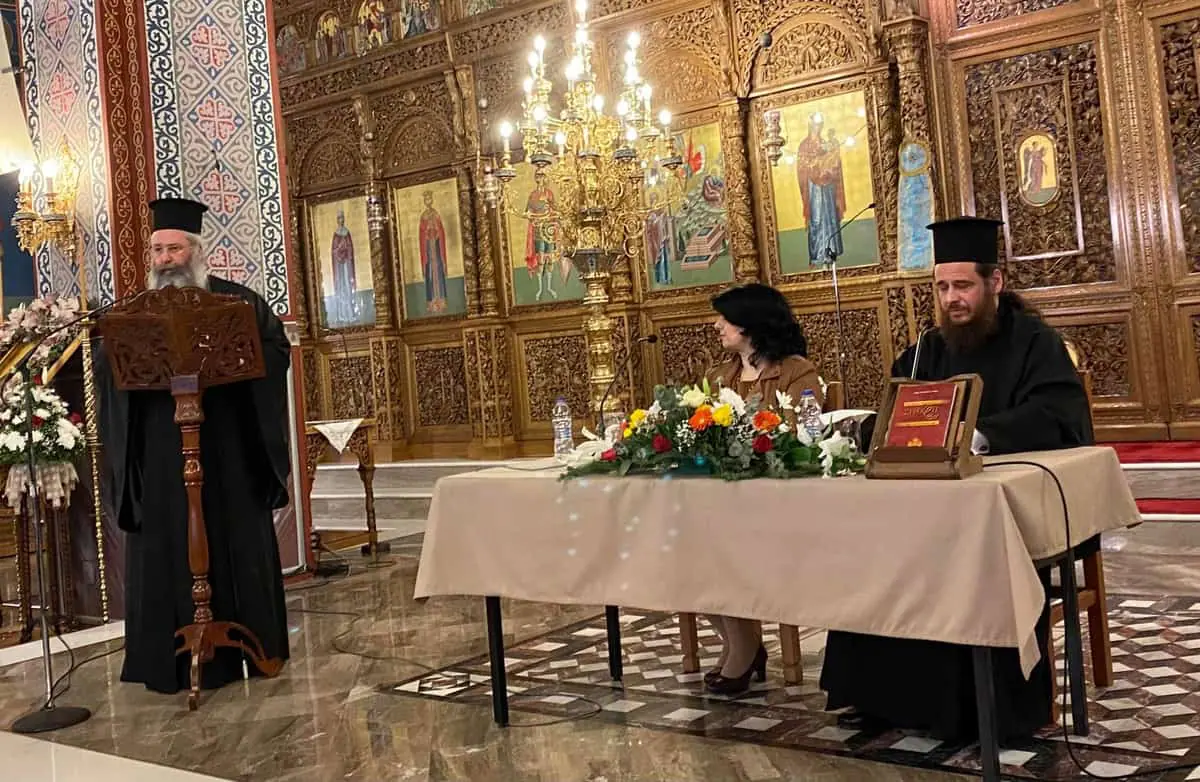Ο Σεβασμιώτατος στην προσλαλιά του συνεχάρη τον π. Διονύσιο για την έμπνευση της δημιουργίας του βιβλίου, ευχαρίστησε τους εκλεκτούς εισηγητές για τις παρουσιάσεις τους, τον Σύλλογο Ιεροψαλτών της Ιεράς Μητροπόλεως, καθώς και όλους τους παρισταμένους, τονίζοντας ιδιαίτερα την παρουσία των αρχών του τόπου, οι οποίοι με τη συμμετοχή τους επικροτούν τις πνευματικές δραστηριότητες.