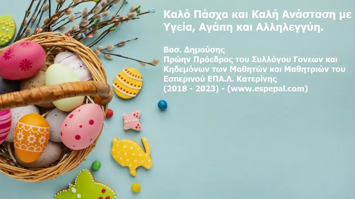 Πασχαλινές Ευχές από τον π. Πρόεδρο Βασ. Δημούση
