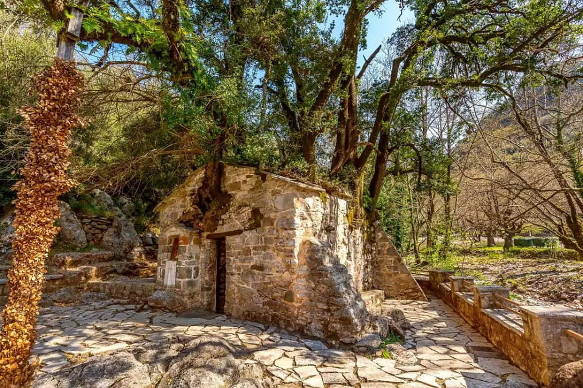 Πολλές είναι οι ιστορίες και οι θρύλοι που συνοδεύουν την συγκεκριμένη εκκλησία με τα δέντρα που ξεπηδούν από μέσα της να φτάνουν τα 20 μέτρα. Οι κορμοί των δέντρων σκίζουν τη στέγη ενώ ρίζες δε βλέπεις αλλά αυτές ποτίζονται από το τρεχούμενο νερό που τρέχει ακριβώς δίπλα.
