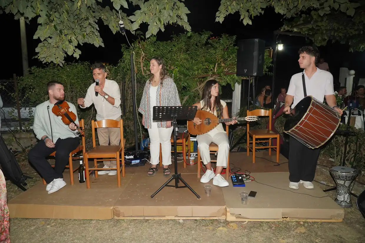 Μετά την ξενάγηση η βραδιά συνεχίστηκε με συναυλία έντεχνης και παραδοσιακής μουσικής από το συγκρότημα «Μουχαμπέτια» το οποίο απαρτίζουν τελειόφοιτοι του μεταπτυχιακού τμήματος παραδοσιακής μουσικής του Πανεπιστημίου Μακεδονίας, αλλά και με χορούς από μέλη των συλλόγων, Λύκειον των Ελληνίδων Κατερίνης και Πολιτιστικός Σύλλογος Ράχης Κατερίνης «Τα Πάτρια». Τα «Μουχαμπέτια» συνόδευε μουσικά και ο Γρηγόρης Μιτσοκάπας.