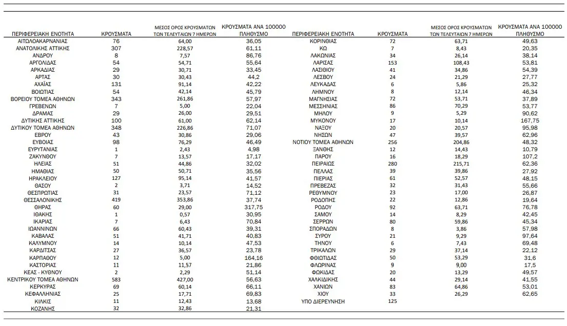Κρούσματα COVID-19 ανά περιφερειακή ενότητα στις 12 Μαΐου 2022: