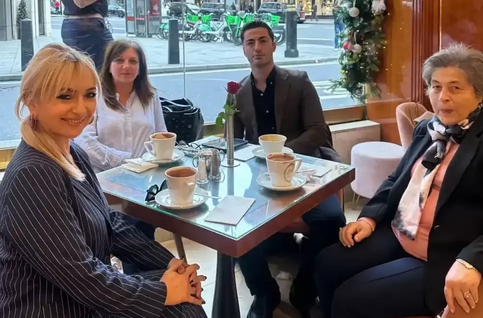 Στη φωτογραφία μας η αντιπεριφερειάρχης και η Ματούλα Βελώνη με Πιεριείς του Λονδίνου, τον δικηγόρο Ηλία Παπανικολάου και τη μνηστή του σε κεντρική πλατεία του Λονδίνου.