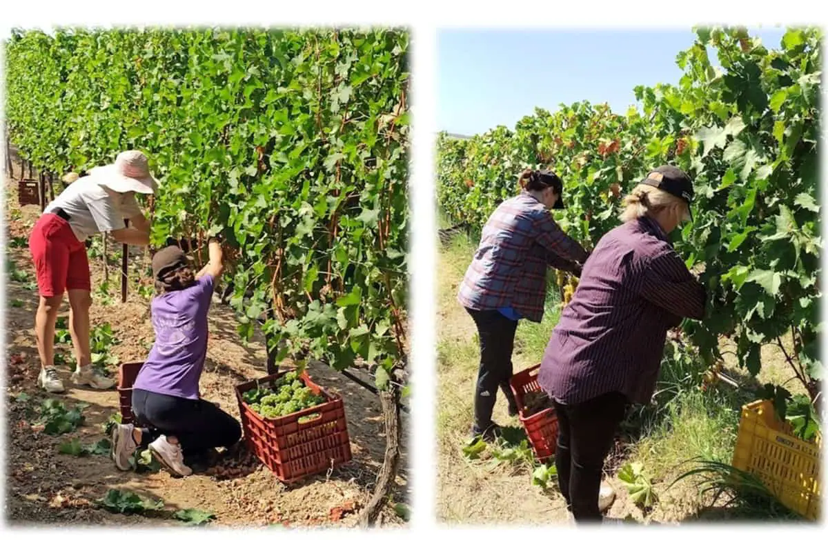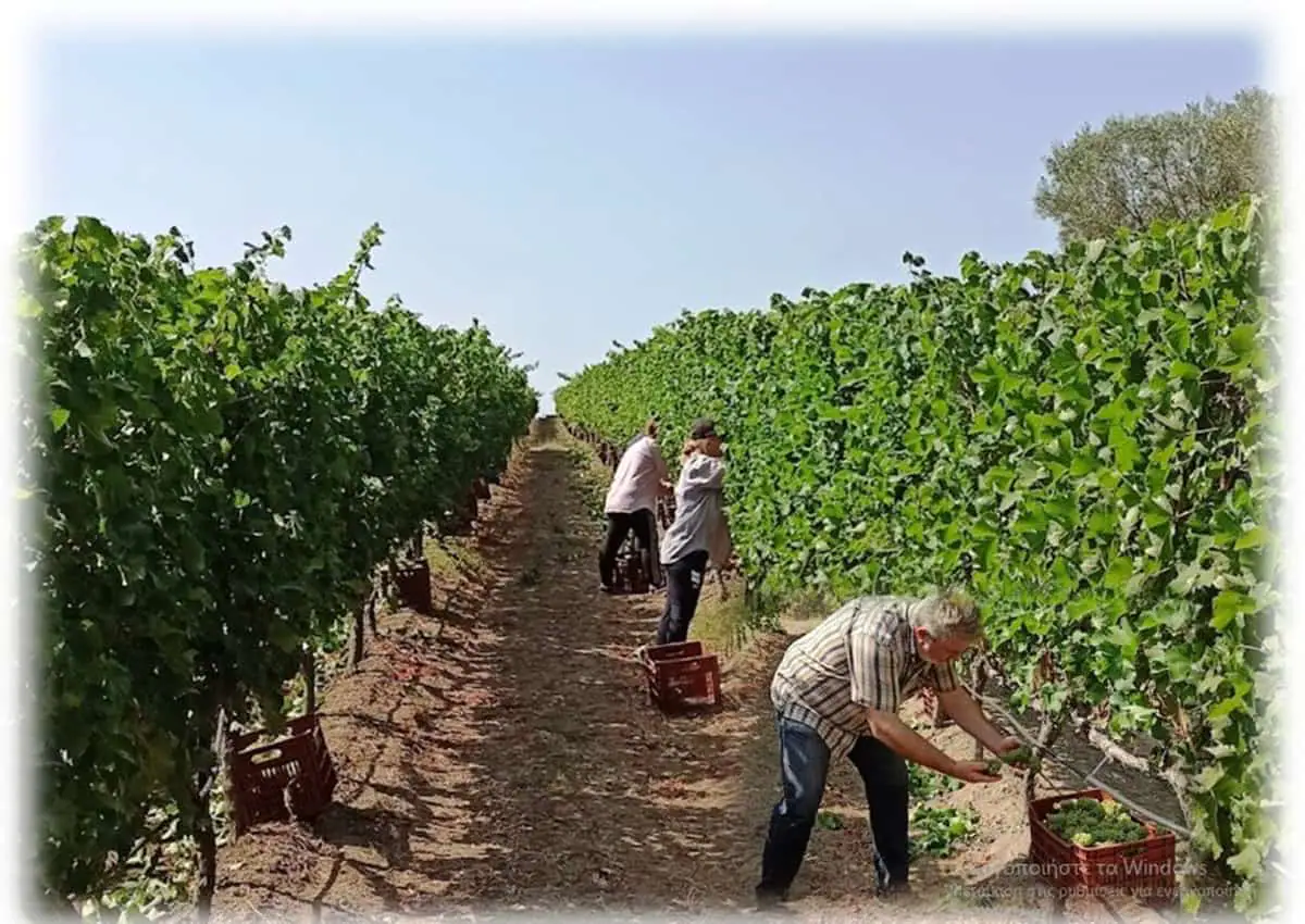 Οι αμπελώνες της γέμισαν χαρούμενες ανθρώπινες φωνές. Μια ευχάριστη φασαρία καθώς οι εργάτες μπήκαν στους αμπελώνες για την συγκομιδή των σταφυλιών. Συζητήσεις σοβαρές αλλά και καλαμπούρια, διάφορες ιστορίες και η εργασία προχώρα ευχάριστα. Όμως και εντολές ακούγονται, για τελάρα που θέλουν δίπλα τους οι εργάτες ώστε να μην χάνουν χρόνο, για το τρακτέρ που πρέπει να φορτώσουν τα γεμισμένα τελάρα. Όλα γίνονται με προγραμματισμό. Αμέσως μετά την συγκομιδή από τους αμπελώνες τα σταφύλια μεταφέρονται στα οινοποιία οπότε και ξεκινά το «πάτημα» στο πατητήρι για να πάρουμε το γευστικό χυμό των σταφυλιών.