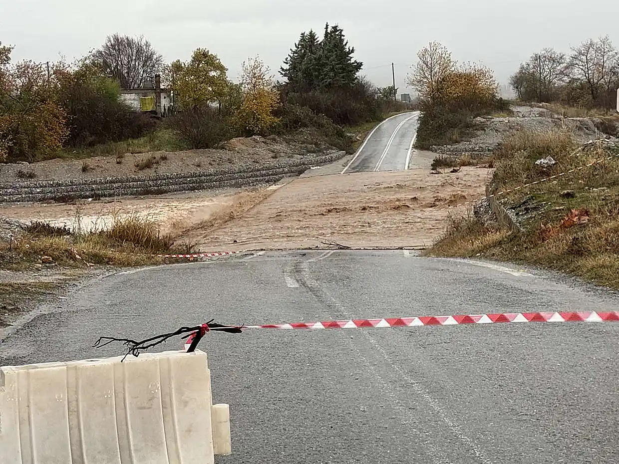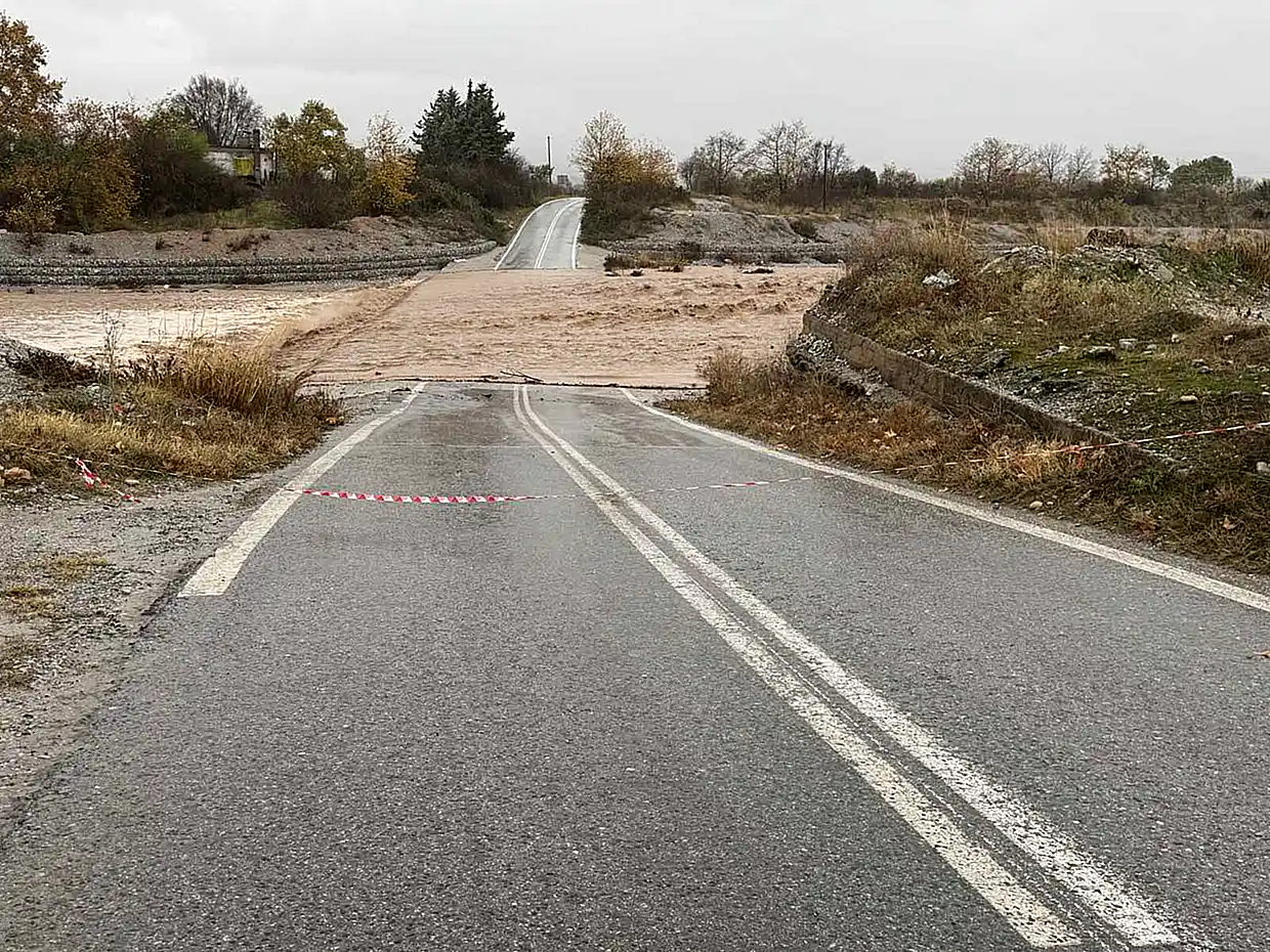 Ένα ποτάμι με νερό διασχίζει το δρόμο προς Κονταριώτισσα κόβοντας στα δυο το δρόμο.