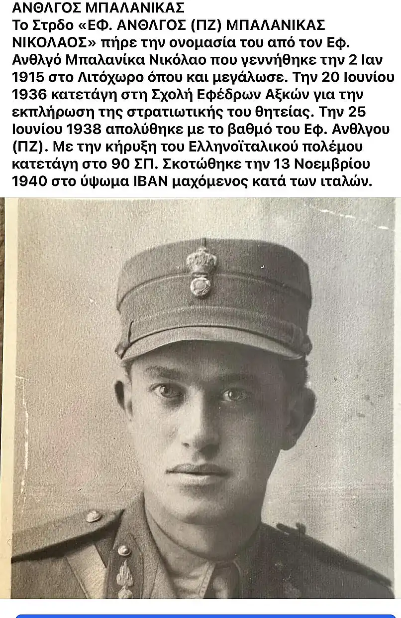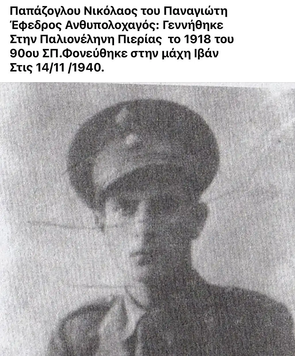 2. Μπαλανίκας Νικόλαος του Γεωργίου, Έφεδρος Ανθυπολοχαγός: Γεννήθηκε στο Λιτόχωρο Πιερίας το 1916, του 90ού ΣΠ. Φονεύθηκε στο Ιβάν στις 15 Νοεμβρίου 1940. - Παπάζογλου Νικόλαος του Παναγιώτη, Έφεδρος Ανθυπολοχαγός: Γεννήθηκε στην Παλιονέληνη (Τρίλοφος)Πιερίας το 1918, του 90ού ΣΠ. Φονεύθηκε στο Ιβάν στις 14 Νοεμβρίου 1940.