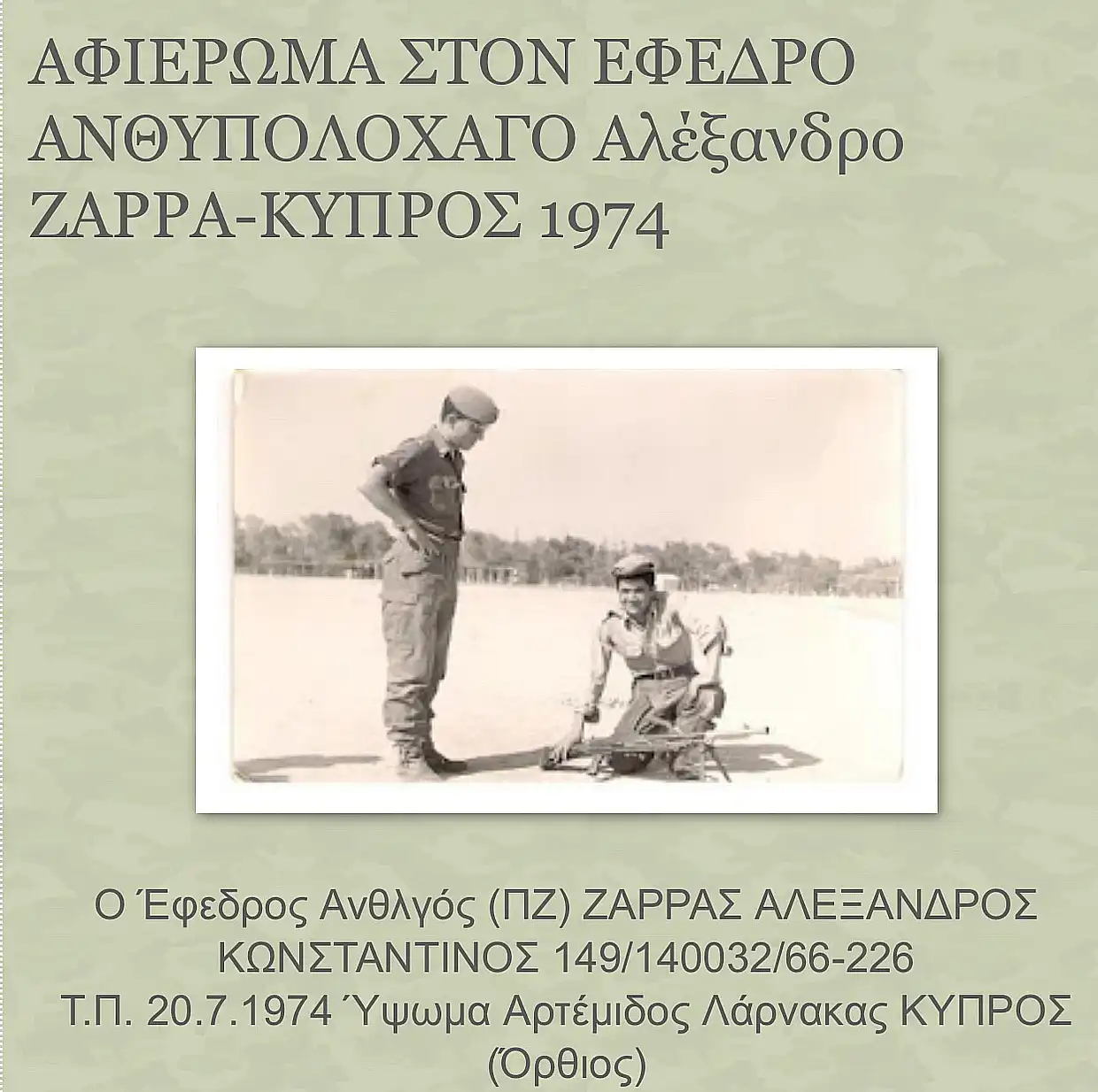- Αλέξανδρος Ζάρρας του Κωνσταντίνου-έφεδρος Ανθυπολοχαγός (ΠΖ). Έπεσε στις 20-7-1974 στο Ύψωμα Αρτέμιδος Λάρνακας.