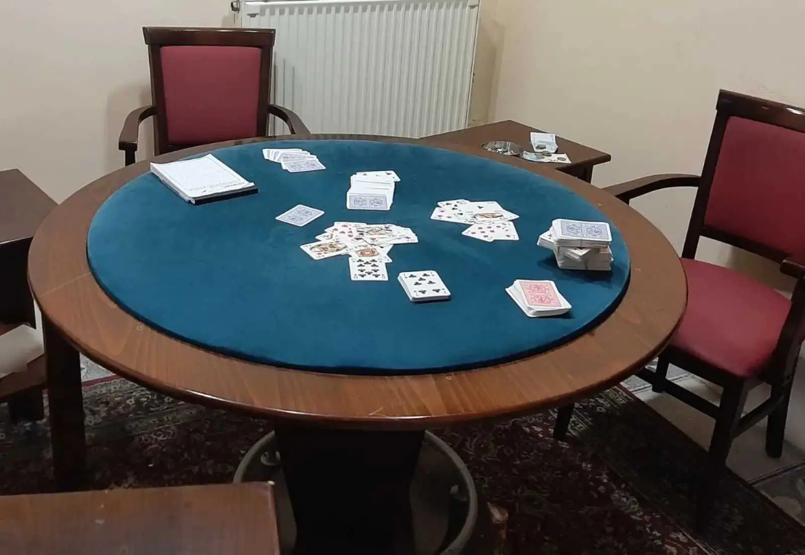 Επιπλέον κατασχέθηκαν ένα ειδικά διαμορφωμένο τραπέζι με τσόχα, τράπουλες και συνολικό χρηματικό ποσό 554 ευρώ, ως προερχόμενο από τη διενέργεια των παράνομων τυχερών παιγνίων.