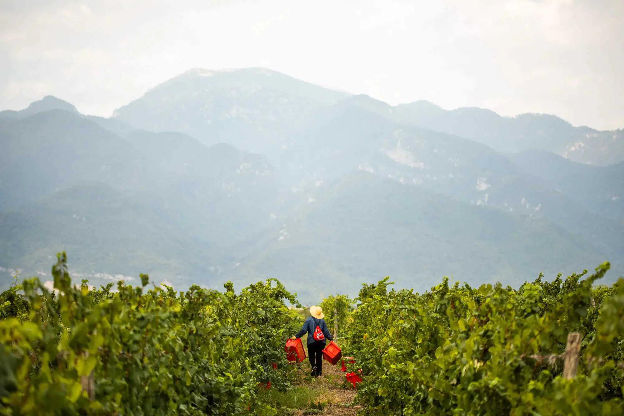Το 1997 φυτεύτηκαν τα πρώτα 10 στρέμματα και σήμερα η έκταση των αμπελώνων ανέρχεται στα 70 στρέμματα. Εκεί, καλλιεργούνται βιολογικά ποικιλίες Ασύρτικο, Βιδιανό, Αγιωργίτικο και Ξινόμαυρο και οι διεθνείς Trebbiano, Chardonnay, Syrah, Merlot, Cabernet Sauvignon.