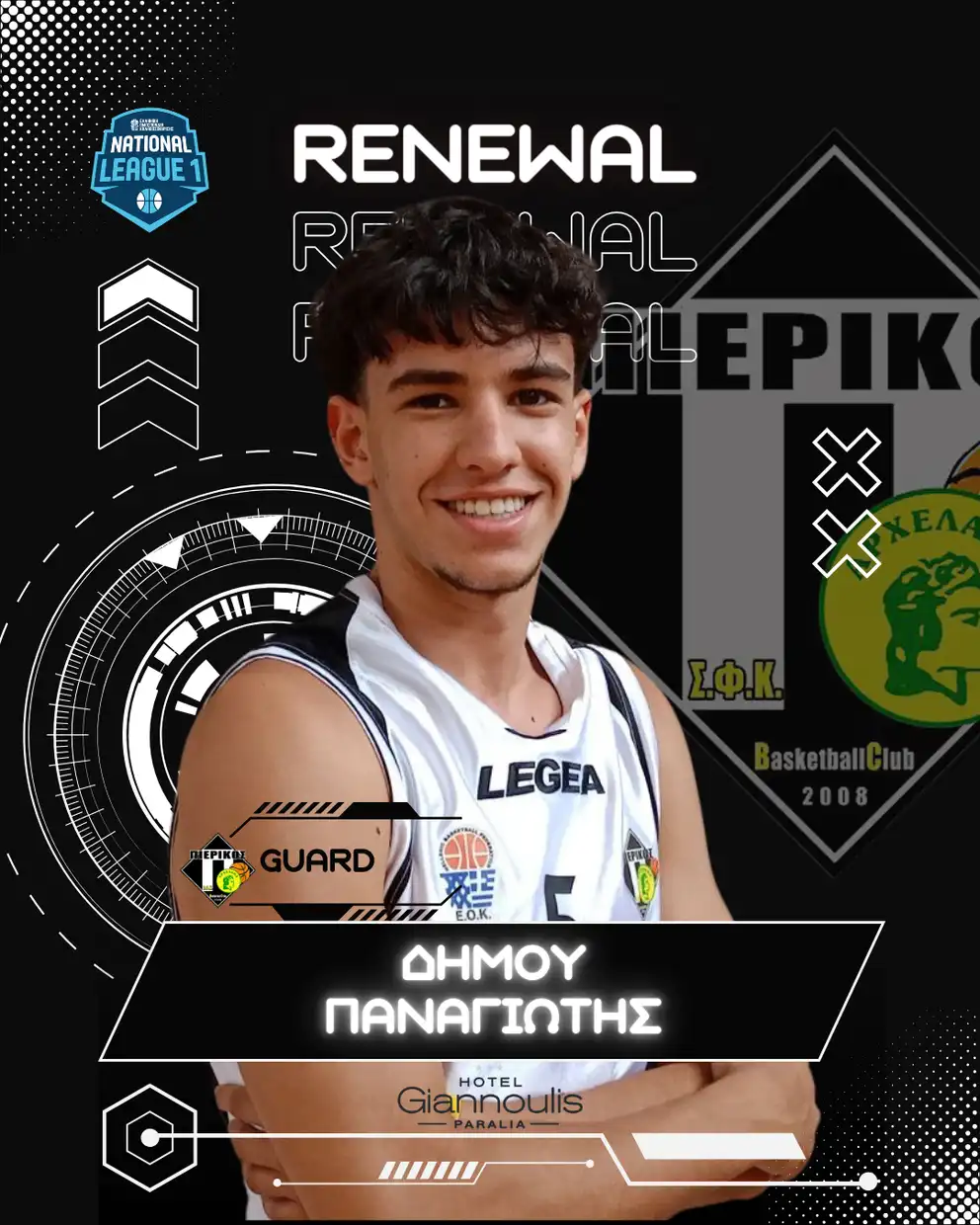 Ο 19χρονος guard και 2ετής πλέον φοιτητής ιατρικής, είχε πέρυσι 7,8 πόντους μέσο όρο, 2,5 rebounds, μοίρασε συνολικά 45 assists στην παρθενική του χρονιά στην ομάδα μας και θα αποτελέσει και στη National League 1 μία σημαντική μονάδα για την ομάδα μας!