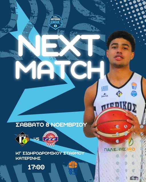 Σάββατο 8 Νοεμβρίου ώρα 17:00 - Κλειστό Γυμναστήριο Σιδ. Σταθμού Κατερίνης