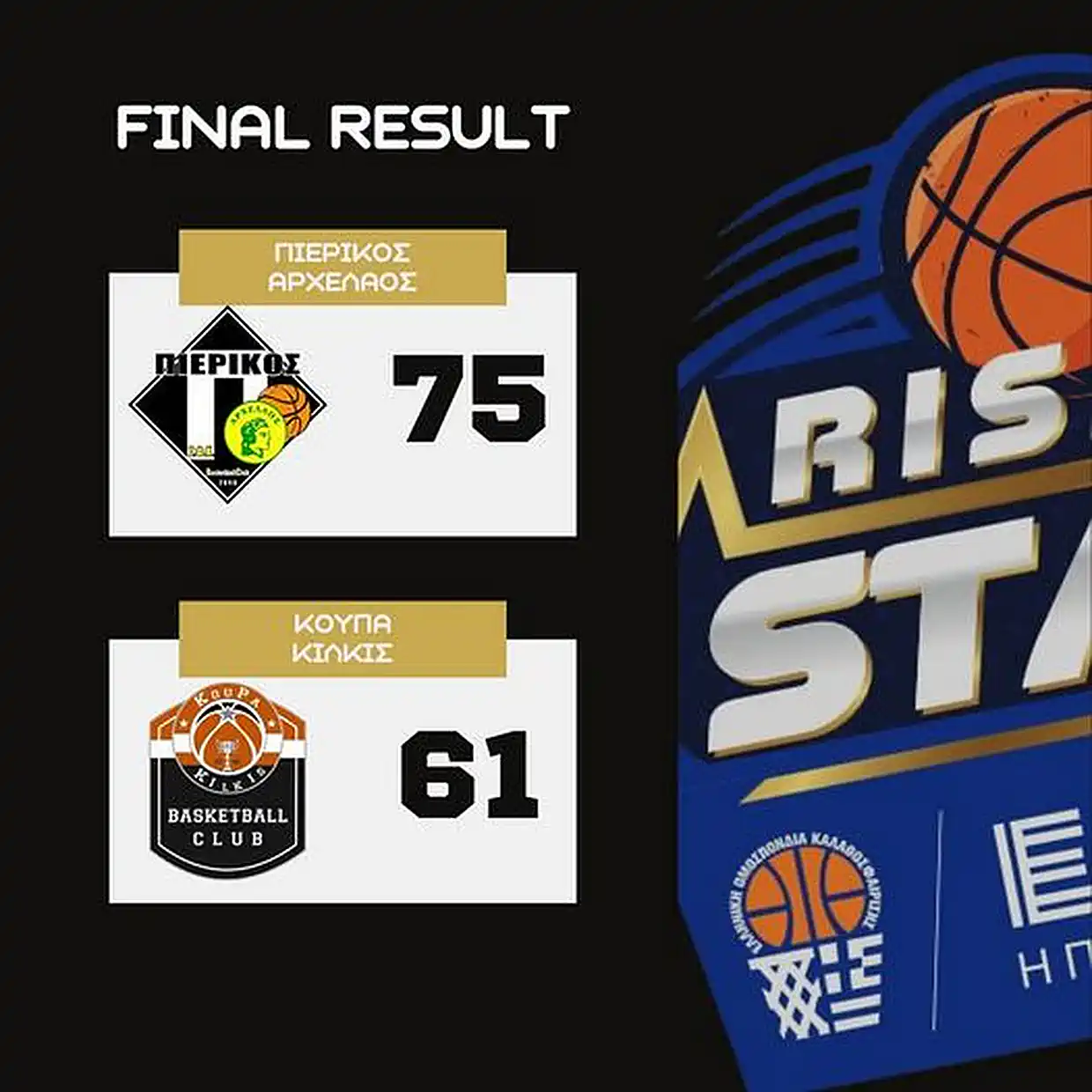 Νίκη και πρόκριση στο β’ προκριματικό γύρο του Rising Stars για τους Εφήβους του Πιερικού Αρχέλαου που επικράτησαν κατα κράτος στον τελικό με σκορ 75-61 επι του ΚουΠα Κιλκίς στο ουδέτερο Δημοτικό Αθλητικό Κέντρο Νάουσας.