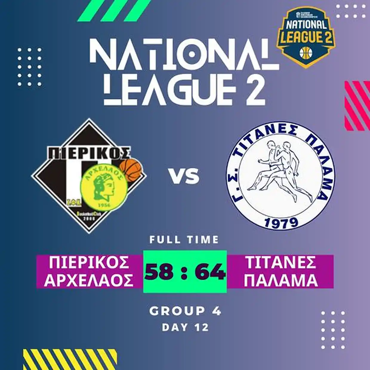 Οι Τιτάνες οδηγούν την κούρσα στον 4ο όμιλο και έκαναν το 11-1 σε 12 αγώνες έναντι του 6-6 σε 12 αγώνες του Πιερικού Αρχέλαου που βρίσκεται στην 7η θέση.