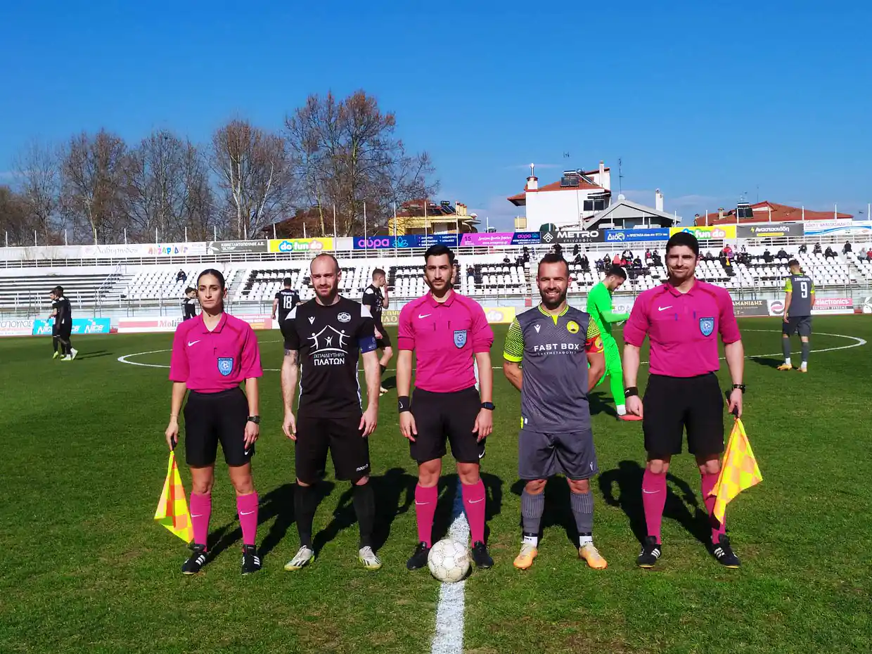 Διαιτητής του αγώνα ήταν ο κ. Αναστασόπουλος (ΕΠΣ Χαλκιδικής) με α’ βοηθό τον κ. Μαλανδρή (ΕΠΣ Χαλκιδικής) και β’ βοηθό την κα. Κοτανίδου (ΕΠΣ Δράμας).