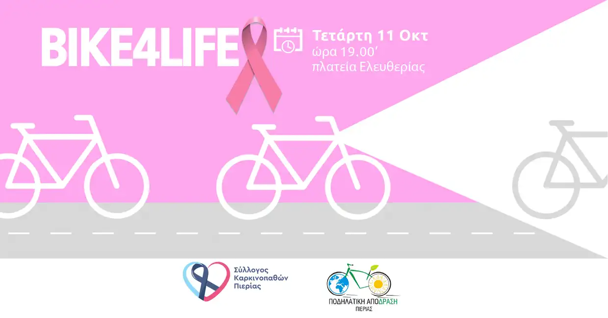 Η Ποδηλατική Απόδραση Πιερίας και ο Σύλλογος Καρκινοπαθών Πιερίας διοργανώνουν ποδηλατοβόλτα την Τετάρτη 11 Οκτωβρίου στα πλαίσια της εκστρατείας ενημέρωσης για την πρόληψη του καρκίνου του μαστού.