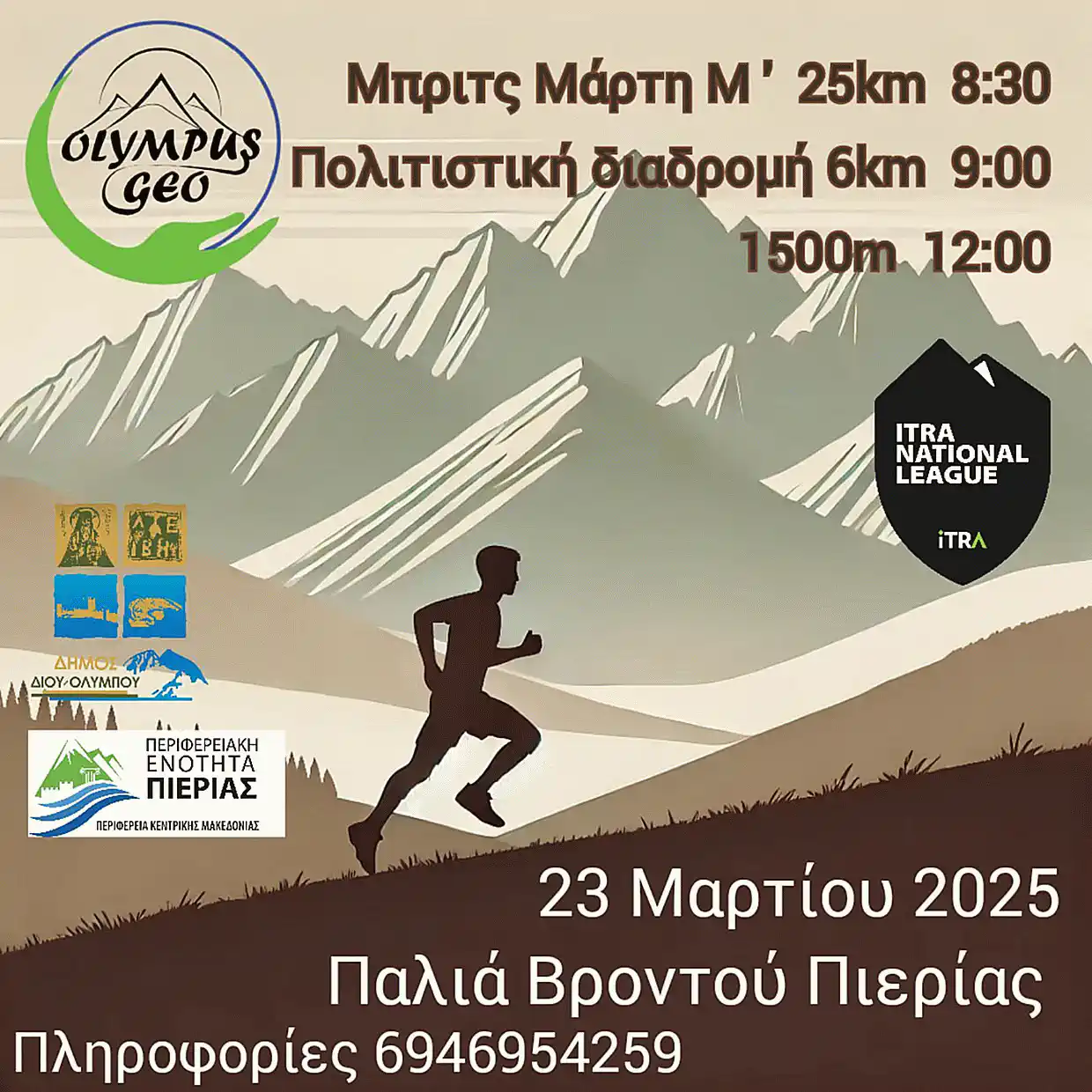25 χλμ. “Μπριτς Μάρτη Μ'” – Μια απαιτητική διαδρομή που ακολουθεί τα μονοπάτια των παλιών κτηνοτρόφων, αποκαλύπτοντας ιστορίες επιβίωσης και τη βαθιά σύνδεση του ανθρώπου με τον Όλυμπο.
