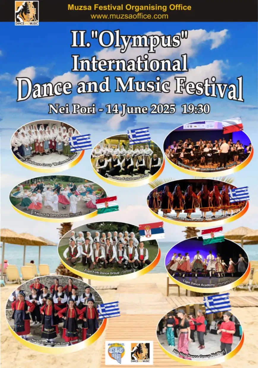Ο Πολιτιστικός Σύλλογος Νέων Πόρων σας προσκαλεί στο 2ο Διεθνές Φεστιβάλ «Όλυμπος» Χορού και Μουσικής, το Σάββατο 14 Ιουνίου 2025 και ώρα 19:30 στην Κεντρική Πλατεία Νέων Πόρων με συμμετοχή συγκροτημάτων από Ελλάδα, Ουγγαρία, Σερβία και Πολωνία.