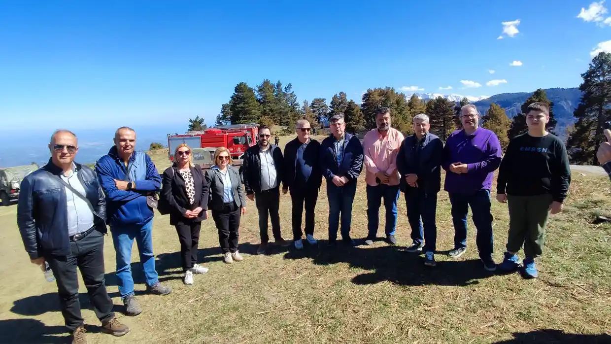Το κλιμάκιο μετά την αυτοψία ενημερώθηκε από τον Διευθυντή Δασών ΠΙΕΡΙΑΣ κ. Παπαπέτρου Πέτρο για τα μέτρα πρόληψης και την πορεία εξέλιξης της πυρκαγιάς.