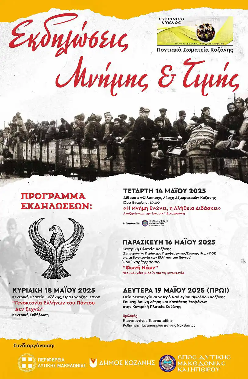 Οι εκδηλώσεις πραγματοποιούνται από τα Ποντιακά Σωματεία του Δήμου Κοζάνης  «Ευξείνιος Κύκλος» με τη συνδιοργάνωση της Περιφέρειας Δυτικής Μακεδονίας, το Δήμο Κοζάνης και του ΣΠΟΣ Δυτικής Μακεδονίας και Ηπείρου της Παμποντιακής Ομοσπανδίας Ελλάδος και έχουν σκοπό να αναδείξουν τη σημασία της ιστορικής μνήμης και να τιμήσουν τα θύματα της Γενοκτονίας των Ελλήνων του Πόντου.
