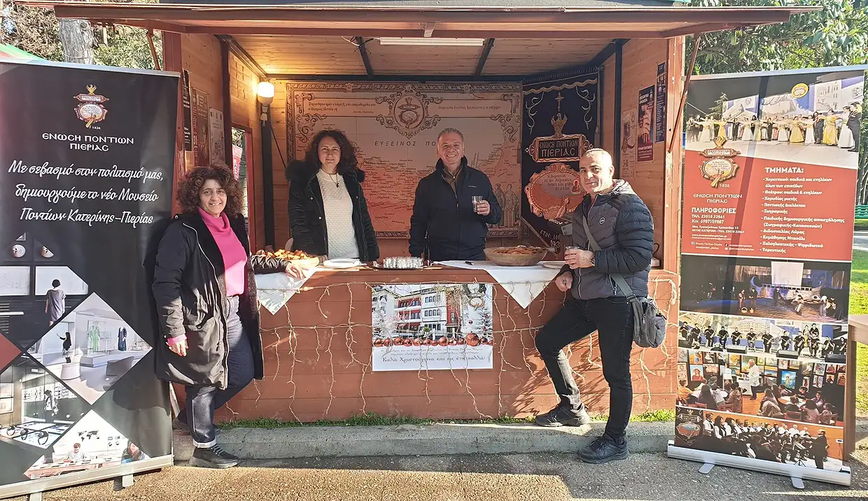 Παράλληλα, τα μέλη του συλλόγου ενημέρωναν το κοινό για τις δράσεις και τις πρωτοβουλίες της Ένωσης Ποντίων Πιερίας, ενισχύοντας την επαφή της με την τοπική κοινωνία στο πλαίσιο των εορταστικών εκδηλώσεων του Δήμου Κατερίνης.