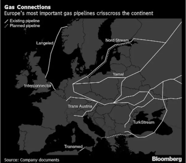Ορισμένες χώρες της Ευρωπαϊκής Ένωσης εξαρτώνται από αυτό επειδή κλείνουν τις μονάδες άνθρακα, ενώ η Γερμανία σχεδιάζει ακόμη και το τέλος της πυρηνικής ενέργειας. Η κυριαρχία της Ρωσίας έχει ενισχυθεί από την εξάντληση των κοιτασμάτων της Βόρειας Θάλασσας που ελέγχονται από το Ηνωμένο Βασίλειο και τις Κάτω Χώρες. Η Gazprom PJSC προμηθεύει περίπου το ένα τρίτο όλου του φυσικού αερίου που καταναλώνεται στην Ευρώπη και, πριν από την έναρξη του ρωσικού πολέμου στην Ουκρανία, βρισκόταν σε τροχιά να γίνει ακόμη πιο σημαντική καθώς η υπόλοιπη ήπειρος συρρικνώνει τη δική της παραγωγή.