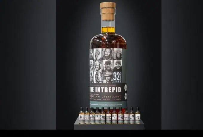 Το ουίσκι μέσα στο μπουκάλι είναι ένα Macallan single malt του 1989, το οποίο έχει περάσει 32 χρόνια ωρίμανσης σε δρύινα βαρέλια πριν εμφιαλωθεί το 2021. Έχει απαλό χρυσαφί χρώμα και γλυκιά γεύση με νότες μήλου, όπως εξηγεί ο οίκος δημοπρασιών.
