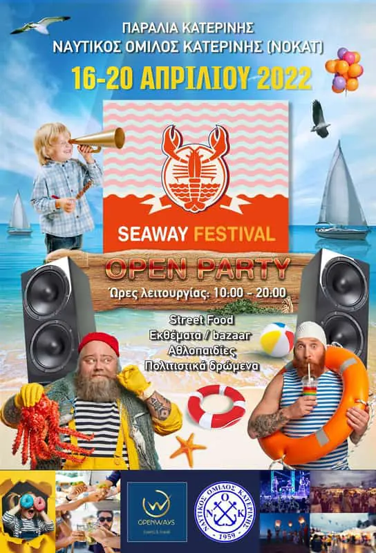To SeaWay Festival, μια ανοιχτή γιορτή, στις ακτές της Παραλίας Κατερίνης, κάνει πρεμιέρα στις 16 Απριλίου παράλληλα με το μεγάλο αθλητικό γεγονός της Ιστιοπλοΐας, το Πανελλήνιο Πρωτάθλημα Σκαφών OPTIMIST U 13.