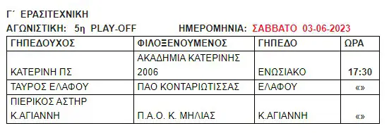 Πρόγραμμα 5ης Αγωνιστικής Play-Off Γ΄ Ερασιτεχνικής