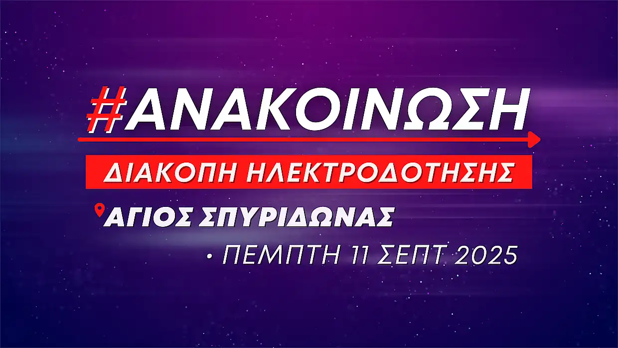 Σύμφωνα με ενημέρωση από τον ΔΕΔΔΗΕ την Πέμπτη 11 Σεπτεμβρίου 2025 θα πραγματοποιηθεί προγραμματισμένη διακοπή ηλεκτροδότησης στον Άγιο Σπυρίδωνα (δυτικό τμήμα της κοινότητας, περιοχή Ιερού Ναού Αγίου Γεωργίου) τις ώρες 08:00 – 11:00.