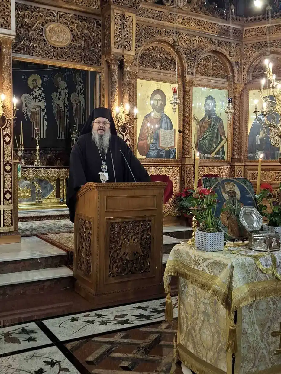 Στο τέλος της ομιλίας, ο Σεβασμιώτατος κ. Γεώργιος ευχαρίστησε θερμά τον Μητροπολίτη Λαρίσης για την εμπεριστατωμένη ομιλία και την παρουσία του.