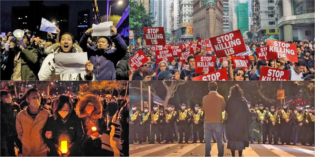 Την Κυριακή, εκατοντάδες φοιτητές συγκεντρώθηκαν στην πανεπιστημιούπολη του Πανεπιστημίου Τσιγκχουά, στο βορειοδυτικό Πεκίνο, όπου τους έχει απαγορευτεί σε μεγάλο βαθμό να φύγουν εδώ και εβδομάδες λόγω των περιορισμών για τον Covid. «Δημοκρατία και κράτος δικαίου. Ελευθερία έκφρασης», φώναζε το πλήθος.