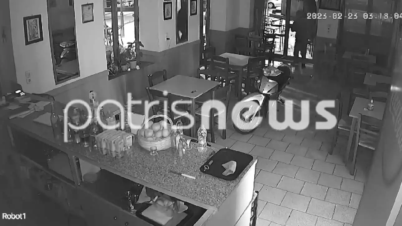 Στο υλικό από το κλειστό κύκλωμα παρακολούθησης διακρίνεται καθαρά ο ένας από τους τέσσερις αγνώστους να αφαιρούν την ταμειακή μηχανή, που περιείχε τις εισπράξεις της ημέρας, ενώ οι τρεις διαρρήκτες ερευνούν τους υπόλοιπους χώρους του καφενείου, προσπαθώντας να εντοπίσουν κάποιο αντικείμενο αξίας.