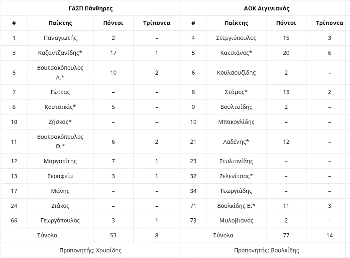 Το πιο αξιοσημείωτο στατιστικό αυτού του δεκαλέπτου αποτέλεσαν ασφαλώς οι πέντε εύστοχες προσπάθειες τριών πόντων από πλευράς Αιγινιακού με τις «κάννες» των φιλοξενουμένων να … βγάζουν καπνούς.