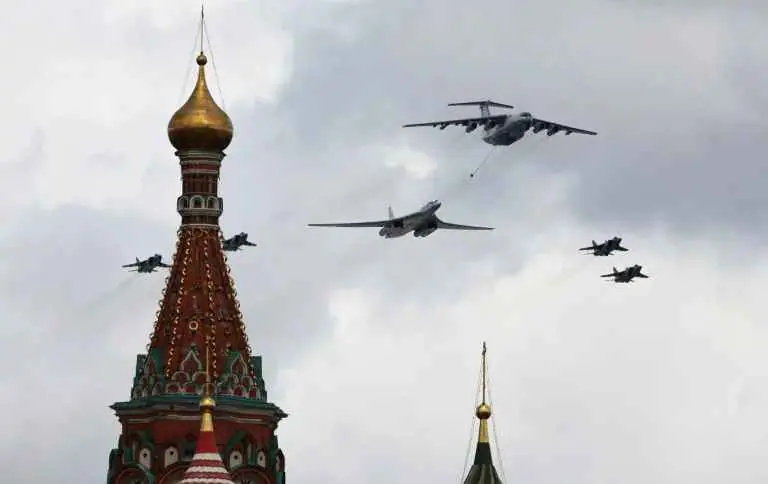 Πάνω από τον καθεδρικό ναό του Αγίου Βασιλείου θα πετάξουν τα υπερηχητικά μαχητικά, τα στρατηγικά βομβαρδιστικά Tu-160 και για πρώτη φορά από το 2010, το αεροσκάφος τύπου Il-80, το οποίο προορίζεται να μεταφέρει την ανώτατη στρατιωτική διοίκηση σε περίπτωση πυρηνικού πολέμου, ανακοίνωσε το ρωσικό υπουργείο Άμυνας.