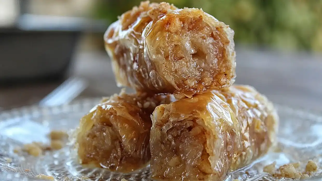 Αυτά τα ανατολίτικα ρολάκια από φύλλο, με λαχταριστή και ευωδιαστή γέμιση από ψιλοκομμένο καρύδι, κανέλα και γαρύφαλλα, τα τυλίγουμε σφιχτά, τα ραντίζουμε με φρέσκο βούτυρο, για να γίνουν αέρινα και τραγανά και τα σιροπιάζουμε με μελένιο σιρόπι, για να λιώνουν αφράτα και φίνα στο στόμα.